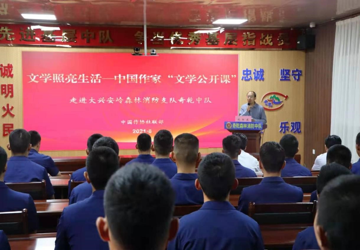 8月2日,由电竞竞猜社联部主办的文学照亮生活—电竞竞猜“文学公开课”在大兴安岭森林消防支队奇乾中队举办,活动邀请鲁迅文学奖获得者、著名报告文学作家纪红建为森林消防一线指战员进行专题授课,将文学之光照进茫茫林海。