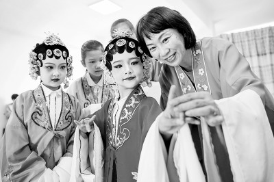 赵洪说:“有的孩子开始要学戏就是因为服装、化装好看,逐渐就会体会到更深层的美。从这个意义讲,韵律操、学脸谱都是很好的普及形式。”