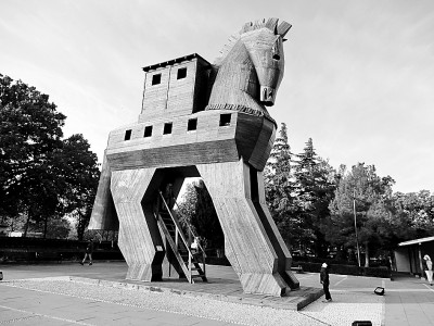 特洛伊遗址供游人凭吊的木马 王纪潮摄