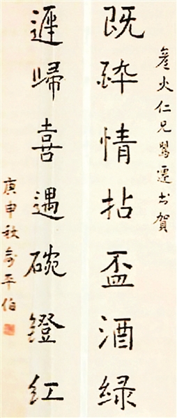 搬了多次家,俞平伯赠的“既醉情拈杯酒绿,迟归喜遇碗灯红”始终挂在客厅