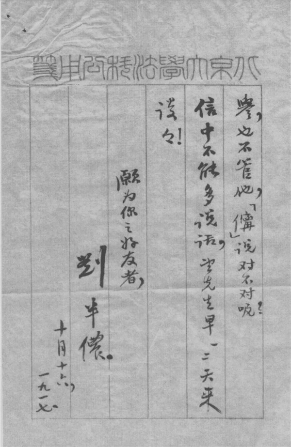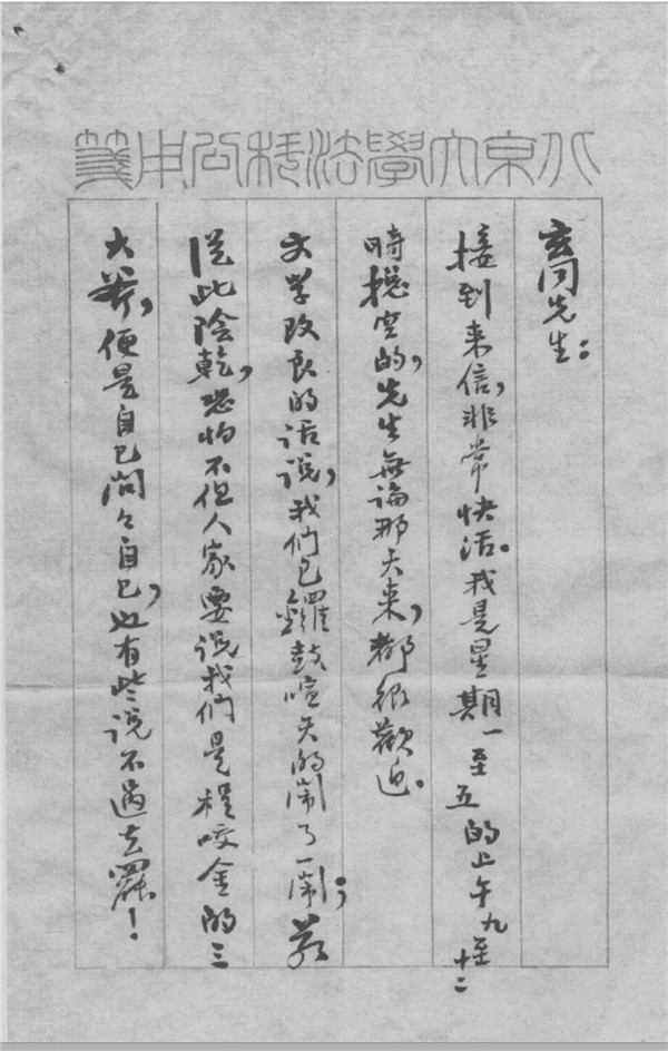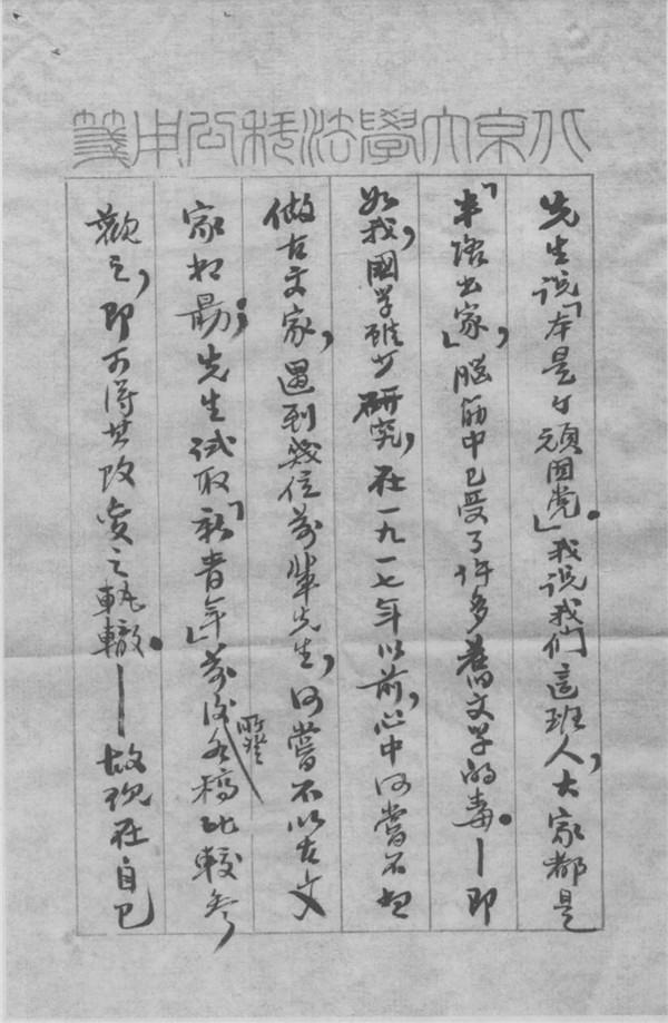 按:载北京鲁迅博物馆编《鲁迅博物馆藏近现代名家手札》(三),福建教育出版社2001年版,第210~214页。灰度影印件。毛笔直行书写,行书。凡五纸。信笺天头印有“北京大学法科公用笺”篆字。