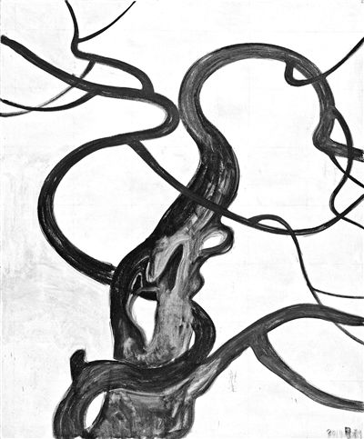 艺术家胡柳的植物树木隐藏在她用铅笔涂满的整个黑色画面中,轮廓的重要性消失了,但是却有一种宁静的流动感。艺术家张恩利的《老树》系列则暗喻人的某种状态,正如艺术家所说:“‘树’对于我而言,是一个个肖像。”
