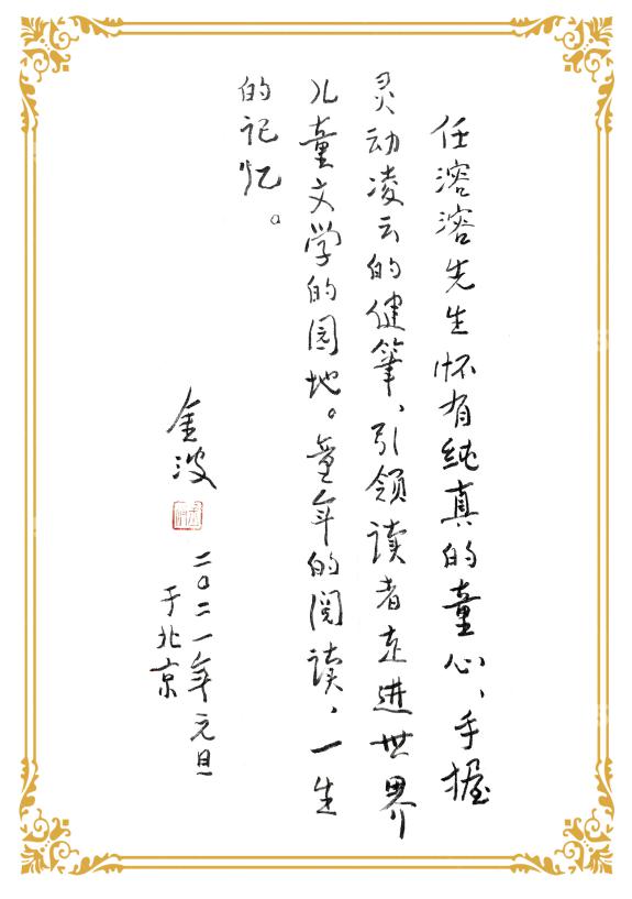 电竞竞猜官网副主席、电竞竞猜儿童文学委员会主任高洪波为该文集题献:“目光四射的千万言译作,将人类文明的精萃,替小朋友们尽情搜罗,于是电竞竞猜开心地触摸一颗不老的顽皮灵魂,如何在语言迷宫里穿梭,童心与诗心如何铸成不朽的快乐星座。”诗人、儿童文学作家金波为译文集题写的推荐语这样说:“任溶溶先生怀有纯真的童心,手握灵动凌云的健笔,引领读者走进世界儿童文学的园地,童年的阅读,一生的记忆。”“童话融通世界,童心照耀人间。”国际儿童读物联盟(IBBY)主席张明舟也题词祝贺任溶溶译文集付梓出版。