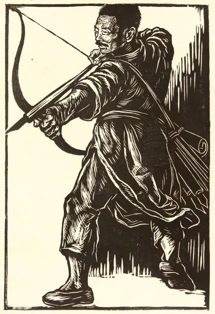 图1 善射者鲁迅 陈烟桥 1947年 木刻