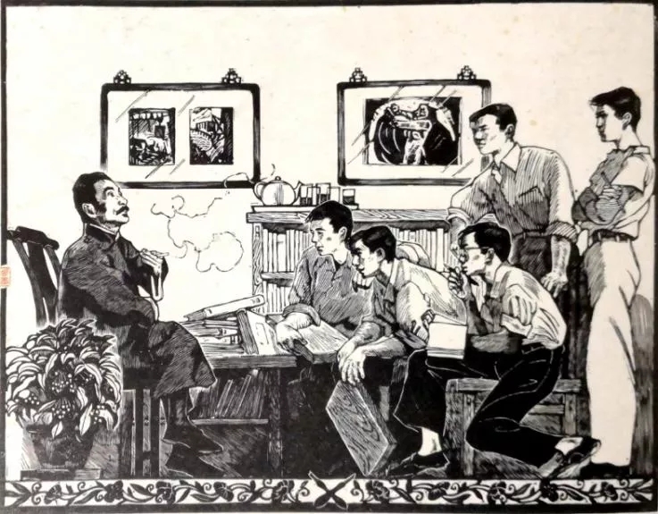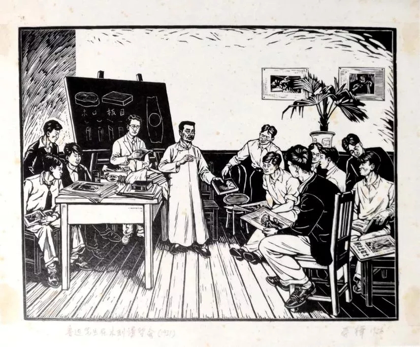 图4 鲁迅先生在木刻讲习会 李桦 1956年 木刻