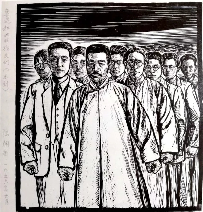图5 鲁迅和他的战友们 陈烟桥 1956年 木刻