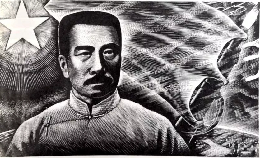 图6 战斗的旗帜——鲁迅与青年运动 王琦 1973年 木刻