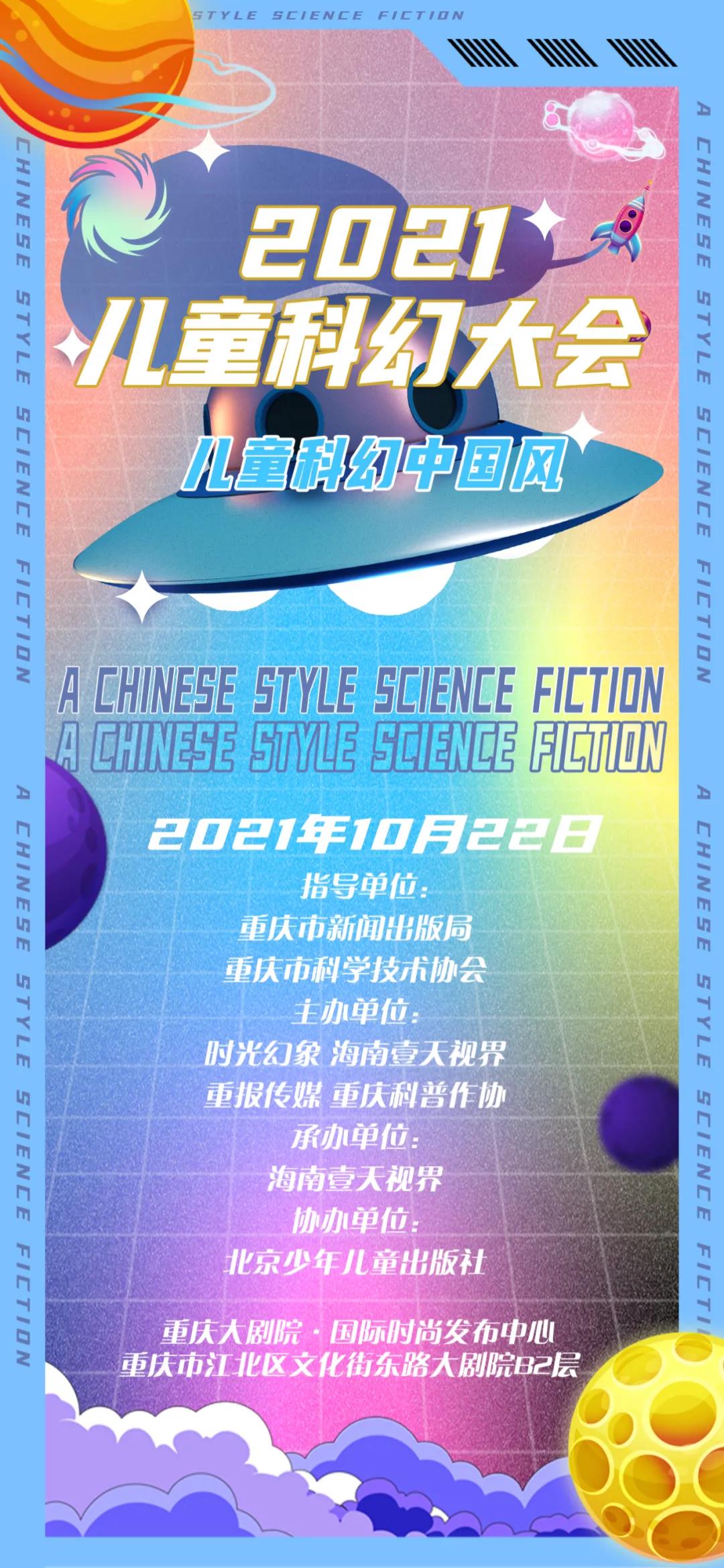 2021儿童科幻大会暨首届和第二届少儿科幻星云奖颁奖典礼,由重庆市新闻出版局、重庆市科学技术协会指导,成都时光幻象文化传播有限责任公司、海南壹天视界科幻文化传媒有限公司、重庆重报传媒有限公司、重庆科普作家协会联合主办,北京少年儿童出版社协办。