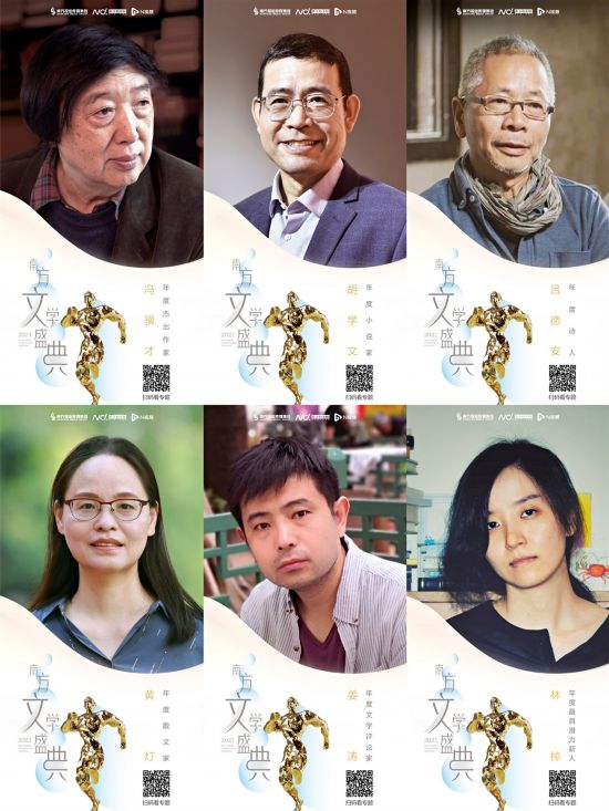 10月23日,“2021南方文学盛典”在广东顺德北滘文化中心音乐厅揭晓并颁奖:冯骥才凭借长篇小说《艺术家们》获得“2020年度杰出作家”,胡学文以长篇小说《有生》成为“2020年度小说家”,吕德安以诗集《傍晚降雨:吕德安四十年诗选》成为“2020年度诗人”,黄灯以非虚构文本《我的二本学生》成为“2020年度散文家”,姜涛因学术著作《从催眠的世界中不断醒来:当代诗的限度与可能》《历史“深描”中的观念与诗》等斩获“2020年度文学评论家”,林棹则凭借处女作《流溪》摘得“2020年度最具潜力新人”。