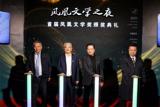 李敬泽(右二)、邱华栋(右)、梁勇(左二)、佘江涛(左)启动第二届凤凰文学奖