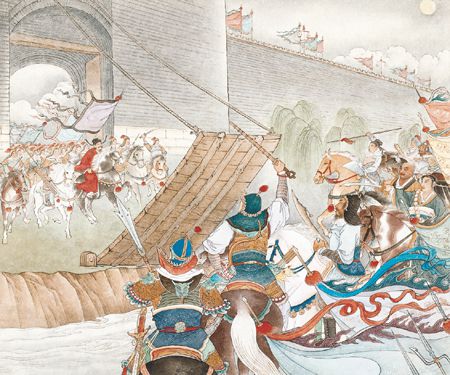 《西游记》是家喻户晓的名著,也是每个中国孩子从小就接触的,在展览当中就有描绘《西游记》精彩片段的绘本。《国粹戏剧书画·大闹天宫》将脍炙人口的京剧剧目《大闹天宫》以一幅幅缤纷且具有东方神韵的画面呈现,来讲述机智神勇的孙悟空不畏玉皇大帝强权、大战天兵天将的故事。而在《俺老孙来也》里,则以更为现代、活泼的视角表达孙悟空的足智多谋。此外还有《清明上河图十三郎》,将北宋名画《清明上河图》与《十三郎》的故事巧妙地融到一起,成为孩子对于名画的兴趣启蒙。