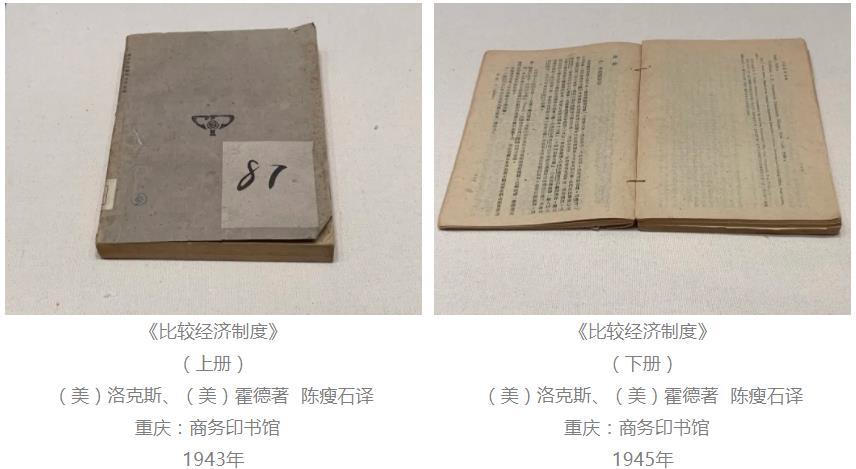美国人洛克斯和霍德著有《比较经济制度》,是重要的社会经济学著作,由陈瘦石翻译。《比较经济制度》上、下卷在1943 年9 月、1945 年4 月出版,是比较经济学专科的基础理论教材,作为“中山文库”丛书之一,由设在重庆白象街的“中山文化教育馆”编辑并由商务印书馆出版发行。