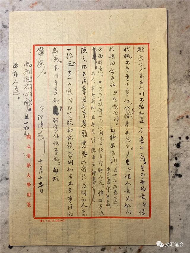 另一通终得入藏寒斋的信札更令人感觉珍贵。所以说更者,不仅同样写给我素所景仰的施蛰存先生,同样内容相当丰富,还关涉浦先生短暂一生中学术、教育之外的另一件功业,主政清华大学中国文学系。这对于正谋食于清华中文系的后辈而言,不能不平添一份大大的亲近感了。为节省篇幅,只将相关内容迻录于下: