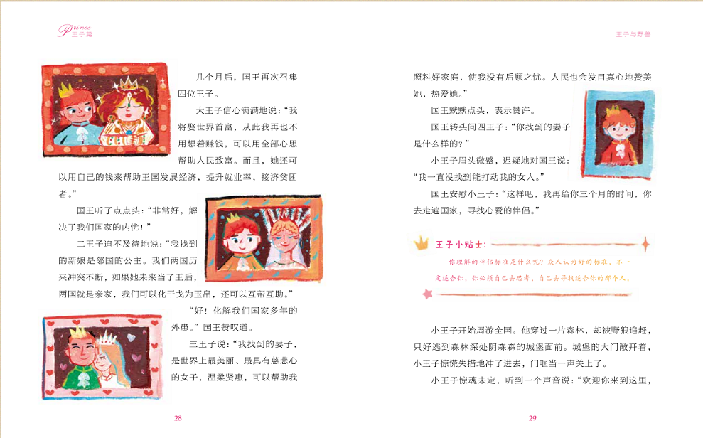 电竞竞猜官网记者:我注意到,这本书分为“公主篇”和“王子篇”,这样的设计很有意思,能谈谈您的想法吗?如果是男孩子的家长买了这本书,引导孩子看完“王子篇”后,是不是也看看“公主篇”?(反之亦然)