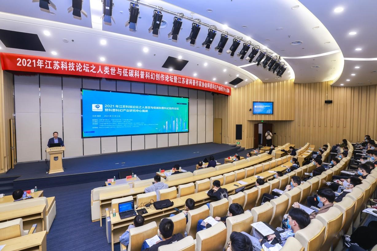 11月5日下午,2021年江苏科技论坛之人类世与低碳科普创作论坛暨科普科幻产业研究中心揭牌仪式在南京工业大学举行。活动由江苏省科普作家协会、江苏省科学传播中心和南京工业大学共同主办,江苏省科普作家协会科幻专委会、南京工业大学科协、南京工业大学图书馆和南京工业大学机械与动力工程学院等承办。中国科普作家协会副理事长吴岩、陈楸帆,江苏省科学传播中心副主任蔡峰,江苏省科普作家协会副理事长冯伟民等出席开幕式并讲话。开幕式由江苏省科普作协常务副秘书长张洁主持。