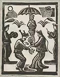 秦兆阳1939年在延安的木刻《秧歌舞》,北京中间美术馆卢迎华提供。原件存于澳大利亚堪培拉国家美术馆。感谢澳大利亚国家美术馆授权使用。