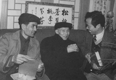 左起:卢兴基、唐圭璋、施议对,1985年11月27日,唐圭璋先生从事教育工作六十五周年暨八十五寿辰庆祝会