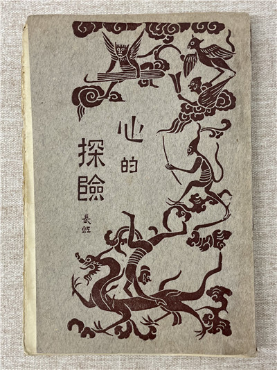 鲁迅搜集、研习汉画拓片,不拘泥形式,创造性地运用在封面设计上,成为翻译图书在装帧设计上民族化的成功尝试。1926年出版的高长虹散文集《心的探险》封面同样融入传统图案,青灰的底色上绘制腾云驾雾的龙形,顶部以细碎云纹铺陈,正中为飞腾于云间的群魔,都围绕“心的探险”四字作围攻、试探态,给人耳目一新的视觉冲击。在该书的目录页先生特意留下注解:“鲁迅掠取六朝人墓门画像作书面。”这种将图案与书名组合的设计,也开启了书籍装帧图文并茂的新形式。