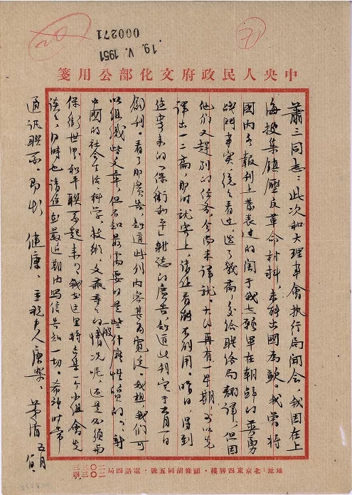 展品中含有20余通未被《茅盾全集》《茅盾全集·补遗》或《茅盾书信集》等收录的信札,包括茅盾致萧三书简11通,致陈白尘、沙博理、普实克、柯灵等人共十余通;另有桐乡市档案馆倾情提供的茅盾珍贵手稿及照片,首次在北京公开展示。这些极其珍贵的手稿,对促进茅盾生平、思想及其作品的研究,对促进我国建党初期革命文艺的研究,都具有十分重要的意义。
