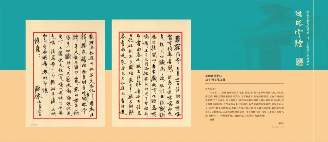 中国现代文学馆举办“纪念茅盾先生诞辰125周年手迹展”