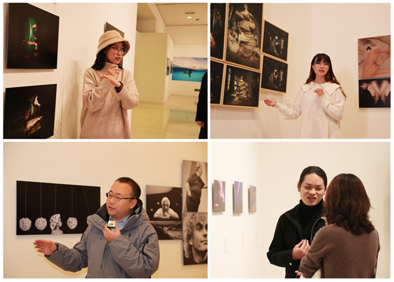 本届大展在展陈方式上也做了新的探索。主视觉色彩丰富,充满动感,表现力、感染力强。对于展览空间进行分主题分区规划,既有大开大合的大气概,又有异彩纷呈的小景观,可谓移步换景。每组作品根据主题、题材、风格的不同进行了特色呈现,多种方式互为补充,丰富活泼。艺术微喷、湿版工艺、作品集、互动装置等展示静态摄影作品,120寸8K超高清显示器展示短视频作品,科技与艺术完美结合;VR全景数字展厅线上展示,随时随地观看互动。这些创新既适应了新媒体环境下摄影的发展变化,也更契合青年人思维活跃、个性独立的特点。入选作者史啸、吴增磊、孟睿涵、康磊、宋词、刘畅、王伟等参加了开幕活动。开幕活动后,北京摄影函授学院教务长袁钦玲对大展进行了在线导览。
