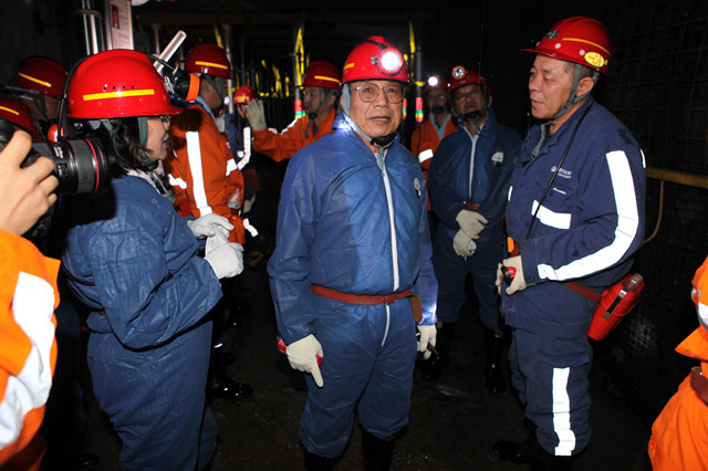 作者张凯(中)在神东大柳塔煤矿井下采访