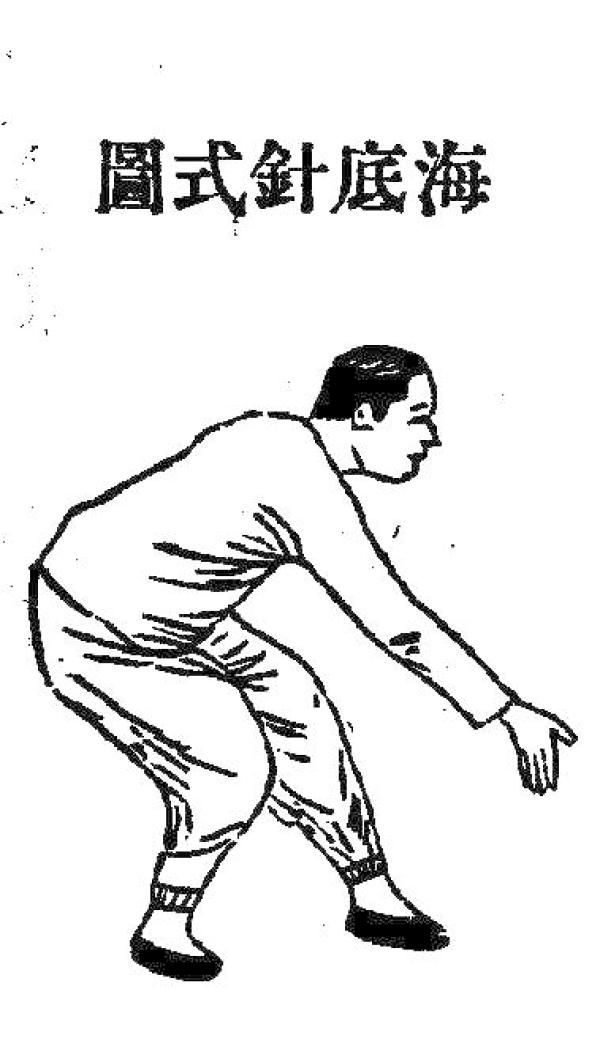 据道(仙)家内丹术说法,人体为一小宇宙,与天地大宇宙相对应。头顶当为山巅,会阴又名海底。传世的《无极内经图》所绘会阴处即一片波澜。传说与道家功夫不无关系的杨氏太极拳有“海底针”一势,其用法即撩击人会阴要害处。太极拳着势名称本口口相传,不立文字,后经文人润色,才逐渐固定下来。但过去习武之人多无文化,一般浅学文人则不谙武术,加之方言音变,所以讹传不少。如“懒扎衣”或作“揽雀尾”(盖“懒扎衣”或作“懒结衣”,后讹为“揽切尾〔音yǐ〕”而“揽雀尾”);“更鸡独立”或作“金鸡独立”;“白鹅晾翅”或作“白鹤亮翅”;“六封四闭”或作“如封似闭”;“单鞭”或作“丹变”;“抱头推山”或作“豹虎归山”;“倒撵猴”或作“倒卷肱”等。至于“海底针”,则另有名为“海底珍珠”者,以“珍珠”暗喻睾丸,用法为抓拿或撩打。还有望文生义,解释前者用法为探指如针,刺击对手小腹者。窃以为皆非是。正确的名称应该是“海底珍”,即典出《西游》(《西游记》最晚成书于晚明,杨氏太极拳则创立于晚清,而早于和同时于杨氏太极拳的陈氏太极拳和武氏太极拳中均无此着势名称)。此“珍”非珍珠之谓,而是“神珍”之“珍”,也就是“神奇的珍宝”的意思。这宝贝不是别的,就是所谓如意金箍棒;不过此处不是作为出击的兵器,而是被击的对象。当然,金箍棒只是讽寓作品中的一个形象,其真实所指,或曰原型是什么,至此,笔者不点破,读者也已该了然吧。