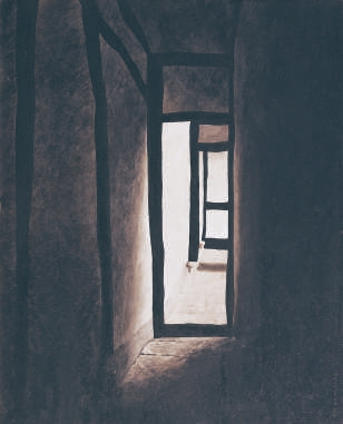 1986年,作品《故园》不仅让世界认识了王怀庆,也让王怀庆更清醒地认识了自己。在江南园林的建筑里,他第一次强烈地感受到自己艺术创作的落脚点。画面中几根梁柱构筑起一个纵深感的情绪空间,没有人,没有家具,没有景物,更没有江南水乡的印痕,只有不可言说的哀婉在光影中弥漫。这种分明又不刻板的书写性的线条以及带有生命体验的具有文化隐喻的创作让王怀庆着了迷,表现的物象由建筑拓展到家具、椅子。