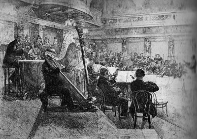 表现维也纳爱乐乐团在金色大厅演出的著名蚀刻画,费迪南德·施穆策作于1923年 资料图片