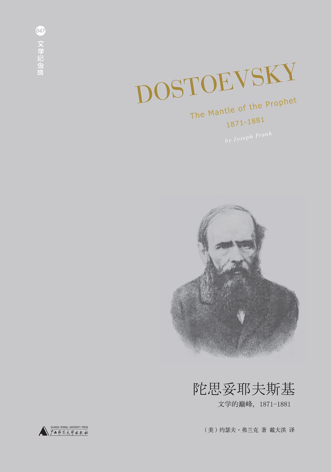 广西师范大学出版社的“文学纪念碑”丛书(魏东主持)于2014年推出约瑟夫·弗兰克的五卷本《陀思妥耶夫斯基》传记,最后一卷是《陀思妥耶夫斯基:文学的巅峰,1871-1881》(原书名Dostoevsky:The Mantle of the Prophet,1871 -1881,2002;戴大洪译,广西师范大学出版社,2022年3月)。煌煌五大卷、总共近四千页的陀思妥耶夫斯基传记,可以不夸张地说,这是“文学纪念碑”中那座最宏伟的碑,是文学与思想、理想与信仰之间最深邃的幽谷,其意义远超出一般的文学翻译出版项目。