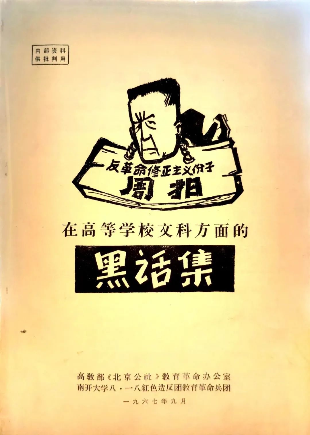[13]高教部《北京公社》教育革命办公室、南开大学八·一八红色造反团教育革命兵团:《反革命修正主义份子周扬在高等学校文科方面的黑话集》,1967年版,前言。