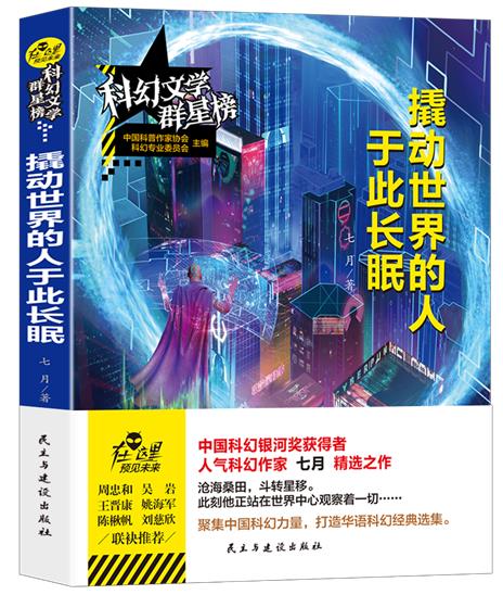 七月自2001年起开始发表科幻、奇幻作品,是中国科幻银河奖得主、人气科幻作家,著有科幻长篇代表作《群星》《白银尽头》,奇幻代表作《赋名师》《机械师记事簿》等。《撬动世界的人于此长眠》中,七月精心选出了7篇中短篇科幻作品《撬动世界的哈林达姆》《关于苏贝拉的最后故事》《擦肩而过》《背面天堂》《合服战争》《双旋》和《震荡》。《七月在科幻创作中擅长用设定严谨的科幻概念表达新奇感和惊异感,塑造“硬”科幻故事。当然,其故事也展现着对人性的关怀和对技术发展的担忧,比如获得第31届银河奖最佳中篇小说奖的《双旋》,讲述未来社会中,基因改造技术大行其道,每个人从出生那一刻起命运就已被决定……。