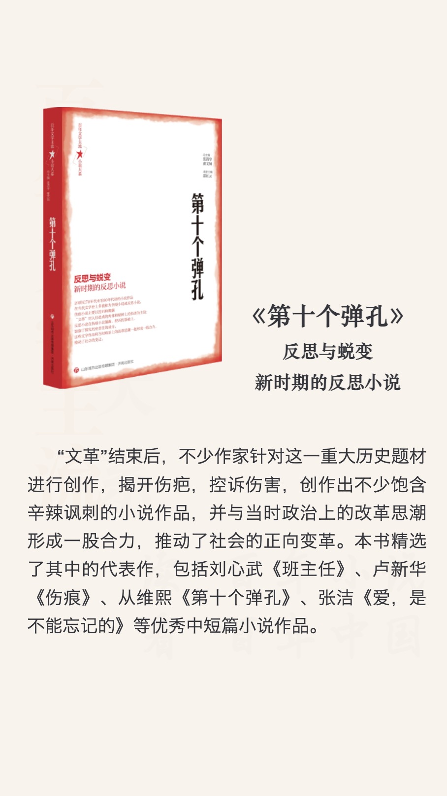 一个世纪以来,新文学始终与现代中国社会历史的风云变迁相互交织激荡,从启蒙到救亡,从民族解放到社会变革,所有重大的事件、历史的转折,都通过文学的方式见证其精神流变。“百年文学主流?小说大系”共计十卷,以近两百万字篇幅记录百年文学主流中最重要、最精彩的中短篇小说,试图通过对经典作品的系统梳理,完整形象地再现百年中国的文学景观。