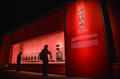 5月18日,观众在“龢:音乐的力量——中国早期乐器文化”展上观赏文物。