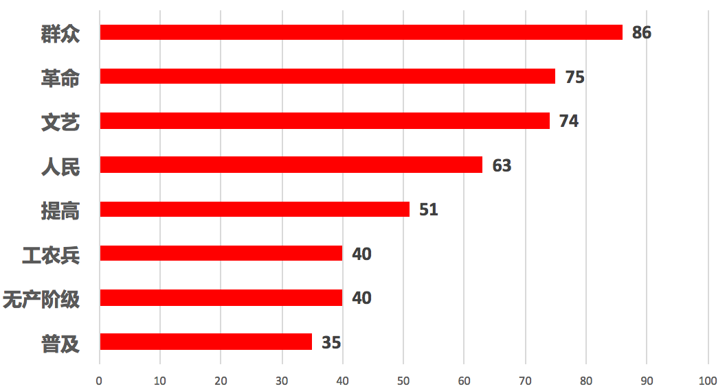 关键词词频:群众86次;人民63次;工农兵40次;无产阶级40次