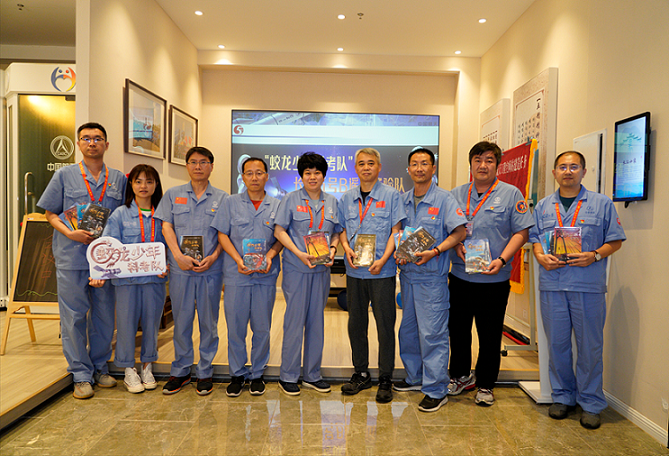 长征五号B遥三火箭试验队的科技工作者手捧“蛟龙少年科考队”系列图书
