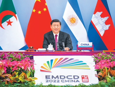 习近平指出,发展是人类社会的永恒主题。只有不断发展,才能实现人民对生活安康、社会安宁的梦想。长期以来,广大发展中国家为探索符合自身国情的发展道路、实现经济社会发展作出了不懈努力,取得令人瞩目的成果。新兴市场国家和发展中国家经济已占全球半壁江山,在科技、教育、社会、文化等领域也取得长足发展。当前,新冠肺炎疫情吞噬全球多年发展成果,联合国2030年可持续发展议程落实进程受阻,南北鸿沟继续拉大,粮食、能源安全出现危机。同时,各国人民求和平、谋发展、促合作的愿望更加强烈,新兴市场国家和发展中国家团结自强的意志更加坚定,新一轮科技革命和产业变革给各国带来的机遇更加广阔。