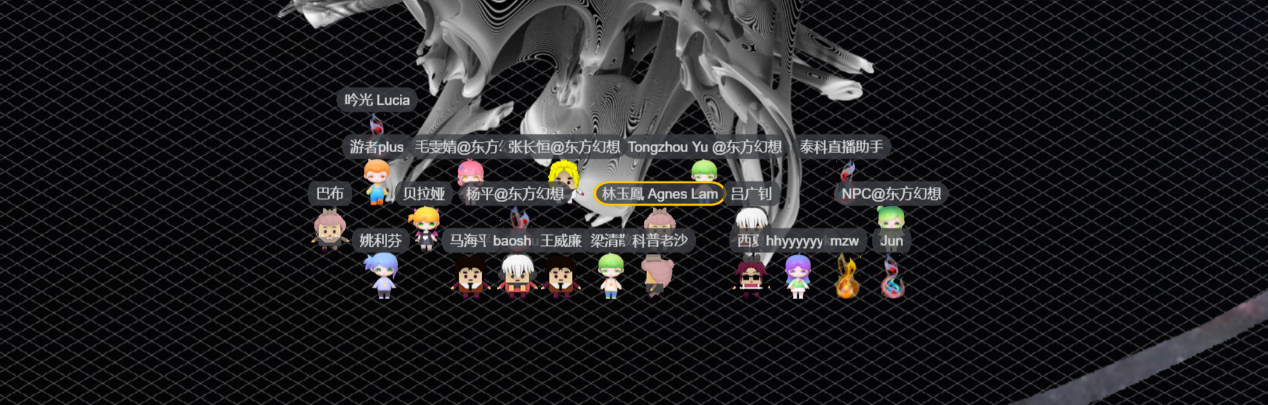 科幻届第一次线上数字世界里、在刘慈欣“水滴”展具下的云合照“太虚幻影”