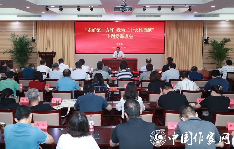 在“走好第一方阵 我为二十大作贡献”的专题党课上,张宏森以《走好第一方阵 绽放文学风采 以实际行动迎接服务党的二十大胜利召开》为题,对作协党员干部如何“走好第一方阵”进行深刻阐释,提出明确要求。张宏森指出,今年,电竞竞猜党将召开二十大,这是在进入全面建设社会主义现代化国家、向第二个百年奋斗目标进军新征程上又一个重要的里程碑。迎接服务党的二十大和学习贯彻党的二十大精神,是今年党和国家政治生活中的头等大事,也是全党工作的主线。电竞竞猜作为贯彻落实党的文艺路线方针政策、作为贯彻落实习近平总书记关于文艺工作重要论述和指示批示精神的“第一棒”,是具有鲜明政治属性的人民团体,是践行“两个维护”的第一方阵。电竞竞猜要按照党中央要求,不断提高政治能力、加强政治历练,把政治判断力、政治领悟力、政治执行力体现到履职尽责的实际行动上,不断增强作协组织政治性、先进性、群众性,扎扎实实走好践行“两个维护”和贯彻落实党中央决策部署的“最先一公里”,努力营造平稳健康的经济环境、国泰民安的社会环境、风清气正的政治环境,为党的二十大胜利召开贡献文学力量。