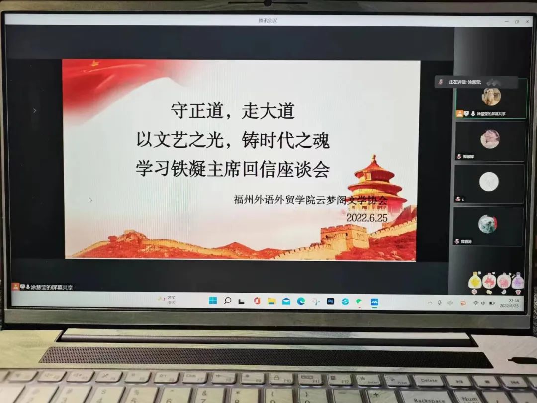 福州外语外贸学院云梦阁文学协会线上学习铁凝主席回信并进行座谈