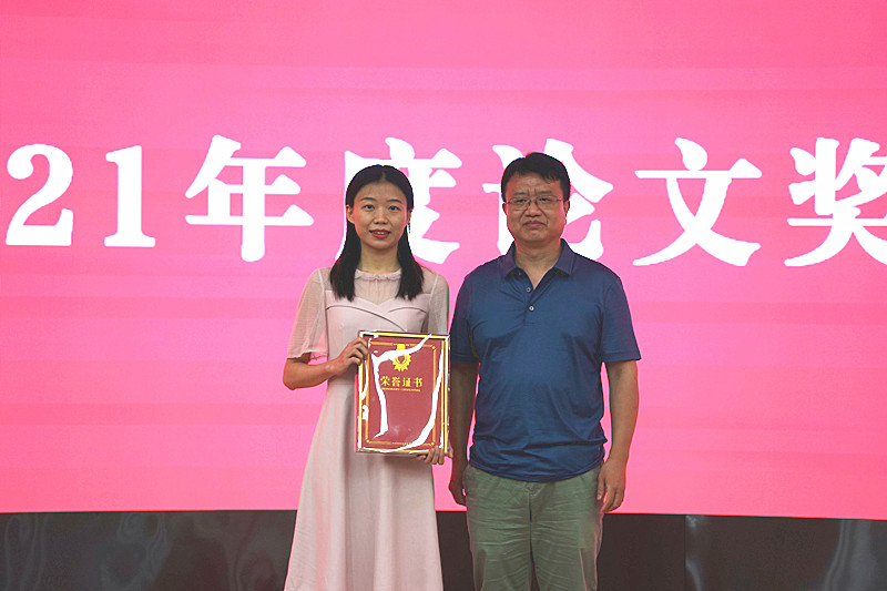 中国现代文学馆副馆长计蕾为中国社科院文学研究所副研究员何浩颁奖(《丛刊》编辑齐晓红代为领奖)
