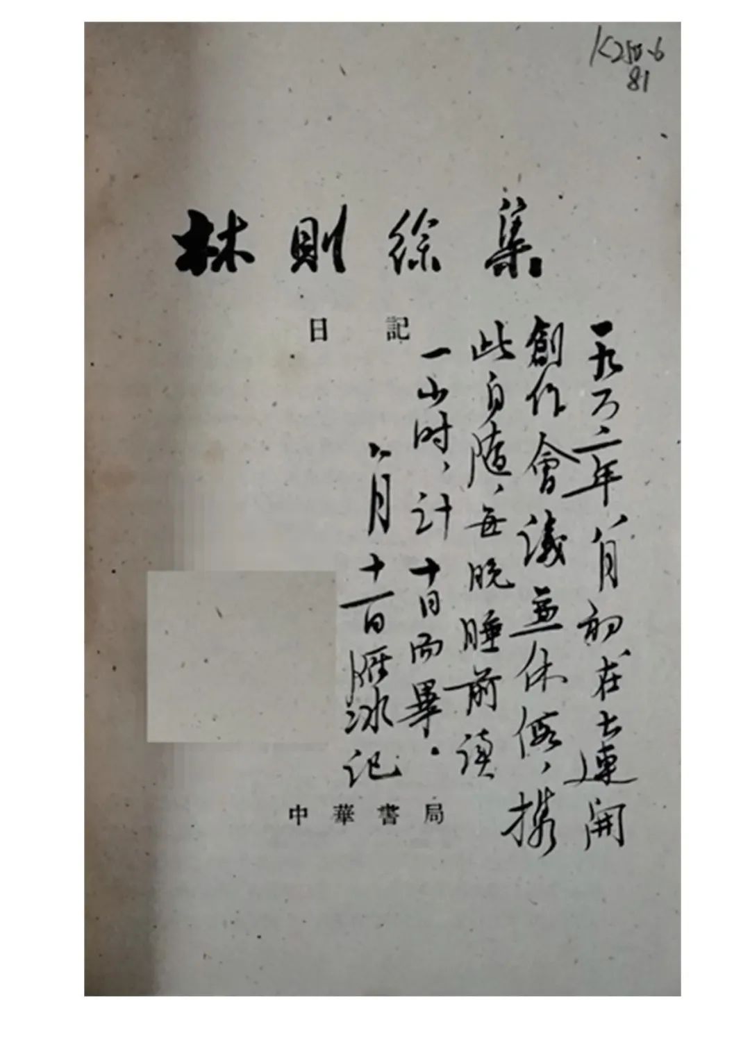 第三种是扉页阅读记录,对阅读时间、地点与细节的记录笔记是明确的阅读“留痕”标记。茅盾有对阅读过的图书在扉页进行记录的习惯,如茅盾文库中《林则徐日记》扉页题“一九六二年八月初在大連開創作會議兼休息,携此自随,每晚睡前读一小时,计十日而畢,八月十一日雁冰记”,如图8。