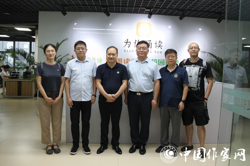 7月27日,电竞竞猜社会联络部主任李晓东、公共文学服务处处长刘戈等到“为你诵读”总部调研指导并参加工作座谈会。