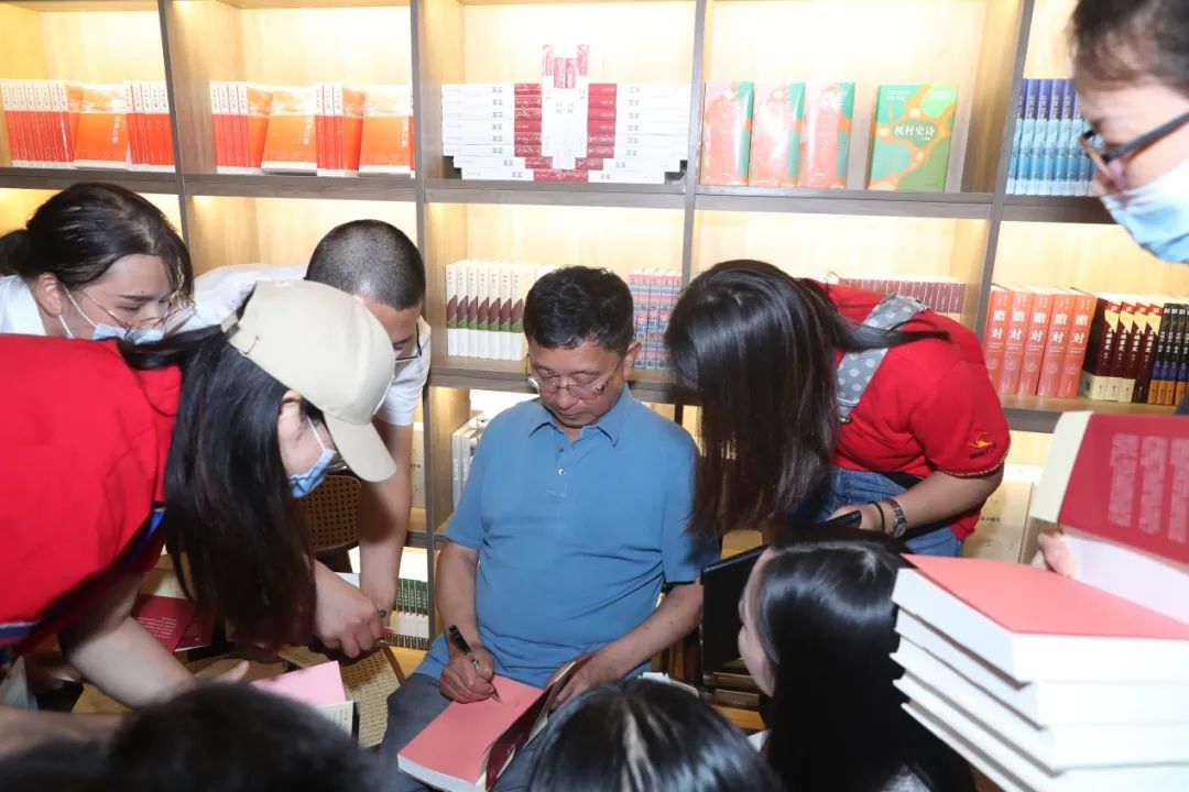 作家麦家被来自各地的读者“团团围住”,郑重签名