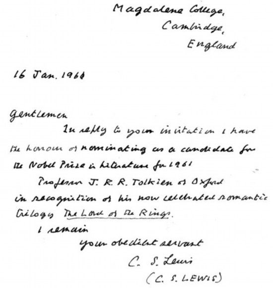 刘易斯提名托尔金《魔戒》的信件,来自《C.S.路易斯:天赋奇才,勉为先知》([英]麦格拉思著,苏欲晓、傅燕晖译,上海三联书店2018年5月版)