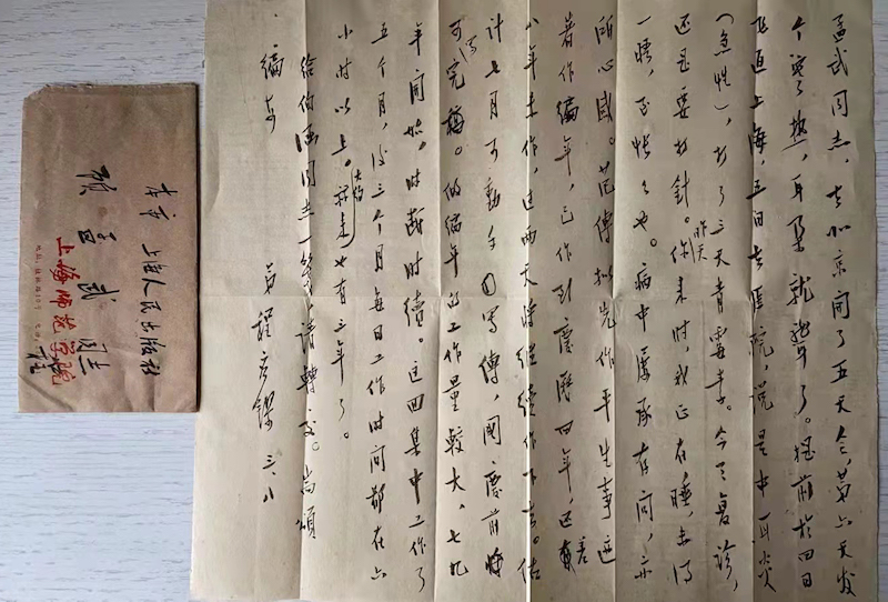 去北京开了五天会,第六天发个寒热,耳朵就聋了。提前于四日飞返上海,五日去医院,说是中耳炎(急性),打了三天青霉素。今天复诊,还是要打针。昨天你来时,我正在睡,未得一晤,至怅怅也。病中屡承存问,亦所心感。《范传》拟先作平生事迹著作编年,已作到庆历四年,还差八年未作,过两天将继续作下去。估计七月可动手写传,国庆前可写完。做编年的工作量较大,七九年开始,时断时续。这回集中工作了五个月,后三个月每日工作时间都在六小时以上。算来大约也有三年了。