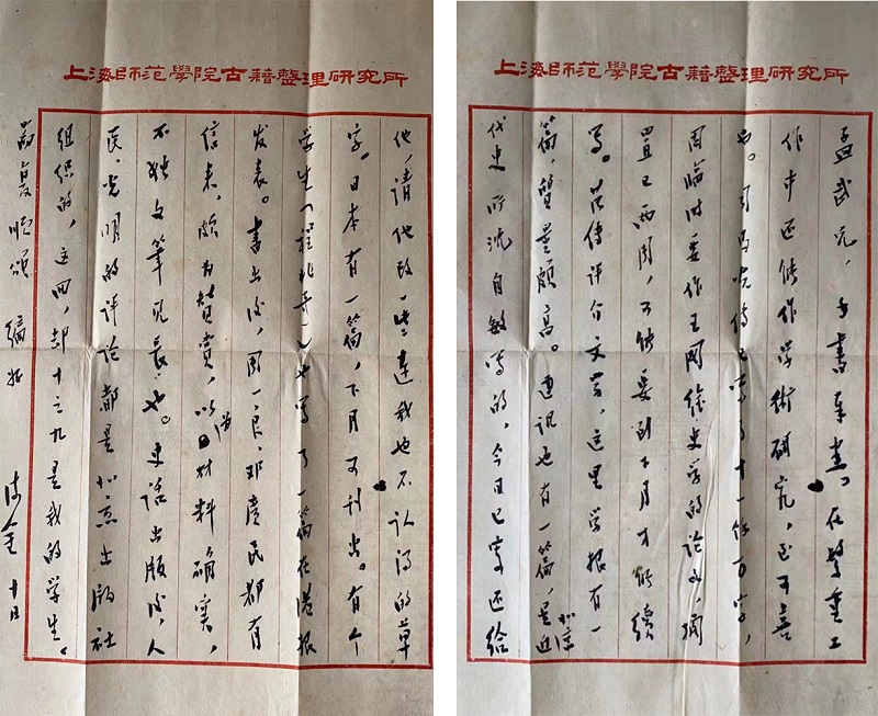 信末提及的“伯涵同志”应是指当时亦任职于上海人民出版社的刘伯涵先生。是年2月24日,程先生赴京参加由教育部召开的全国高等院校古籍整理研究规划会议,“兼为即将成立的古籍研究所争取设置古典文献专业而多方努力”。会议期间,因洗澡受凉,突发寒热,遂于3月4日乘飞机匆匆返沪。(《事辑》,第454、455页)但先生的努力并没有白费,当年,上海师范学院(上海师范大学前身)古籍整理研究所正式成立并开始招收古典文献学专业本科生。