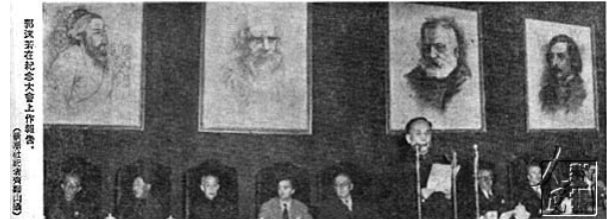 1952年5月4日下午,北京中南海怀仁堂,郭沫若在世界四大文化名人纪念大会上作报告