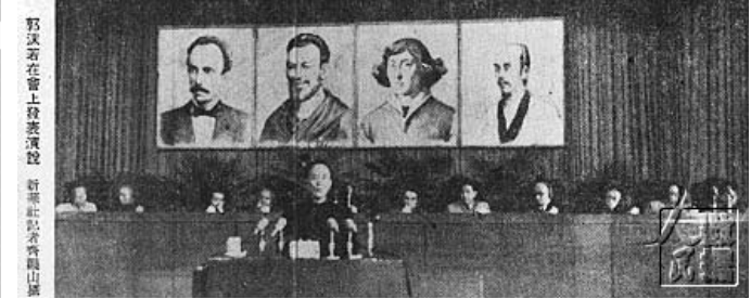 1953年9月27日,北京中南海怀仁堂,郭沫若在世界四位文化名人纪念大会上发表演说