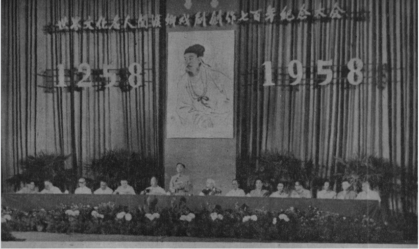 1958年6月28日,首都纪念世界文化名人关汉卿戏剧创作七百年纪念大会主席台